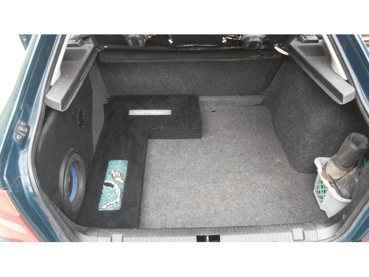 Fandt lige lidt billeder af mit første projekt bygget op med en glasfiber Sub kasse og Forstærker kasse i MDF pakket ind i sort stof som godt kunne have passet bedre i farven til det originale,