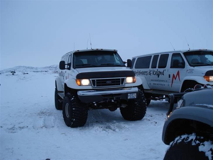 Desuden er bilerne udstyret med special nedgearede gearkasser, så de kan køre x-tremt langsomt og sikkert over isflager osv.. Det er 4x4 når det er bedst...