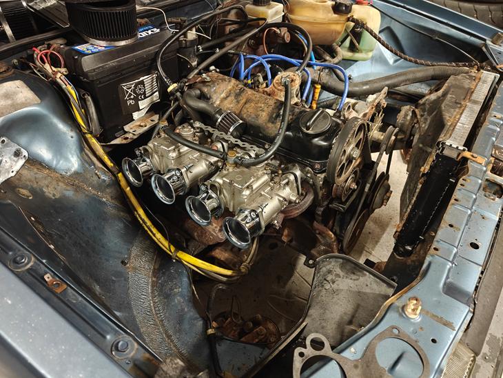 Nå, nu kom jeg jo lige i tanke om at jeg havde et sæt solex 40 DDH karburatorer liggende på hylden så de blev støvet af og sat på skønheden sammen med den skarpeste knast jeg kunne finde på lageret... 288 schrick. Så jeg har nu fundet ud af at med det setup kan jeg snildt køre fra en aygo med den bedste lyd fra forenden nogensinde, fandt så også ud af at en 8v ikke kan holde til 8000 omdr uden at lave noget om i toppen, så den spiste sgu en ventil.... Har heldigvis en 1.8 motor liggende som bliver bygget med fuldt portet crossflow topstykke med alt supertech har i kataloget til sådan et tærskeværk. det kommer nok til at ske i løbet af forråret 2026, så jeg kan komme til pladensmeden med den og så derefter til syn...
