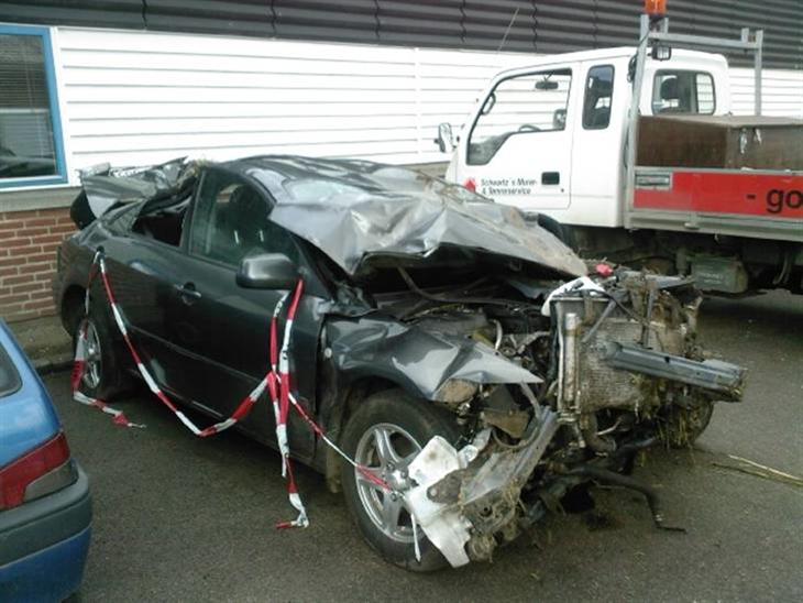 Ja jeg havde lige et lille uheld i Østbirk i en mazda 6, hvor jeg fløj næsten 100meter og lavede kolbøtter og landede på taget.