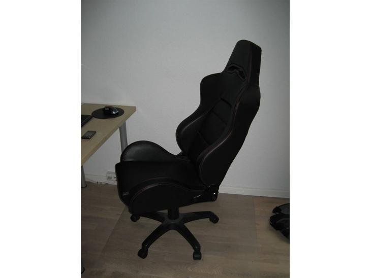 Her er min kontor stol. lavet med en søde fra astina.dk i sort kunstlæder. med røde sygninger. ryggen kan vippe. og stolen kan vippe i sig selv. + op og ned.