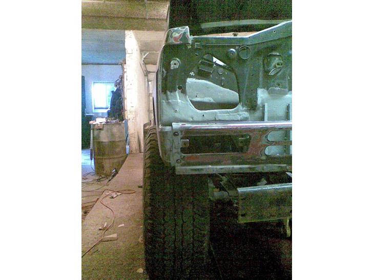 Bilen er blevet autolakeret og der lavet enormt meget rust he fandt ud af at en bil som ser godt ud sagtens kan være råden. Vi har brugt en hel plade på 2x2.5 m til rust.. plus det der var i vangerne...