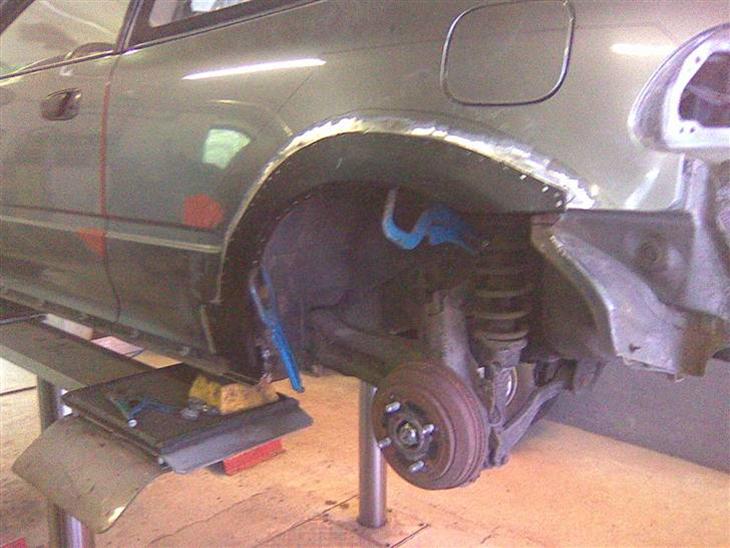 har lige lavet alt rusten og sænket den samt nye bærearmsbøsninger bag på her i weekenden. så skal der lige tilpasses det nye bodykit og først der efter skal den males