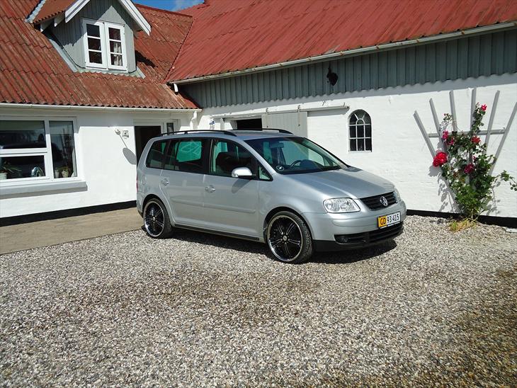 Lækker Touran, og fælgene går super godt til den. Ville gerne selv op i den størrelse fælge, men for mig kræver også en sænkning (Caddy med 18" og uden sænkning er ikke vildt fedt).