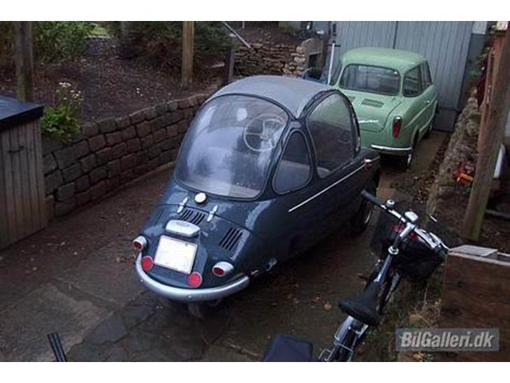 Fin og efterhånden sjælden bil.Er det ikke en goggomobil der står foran ?
