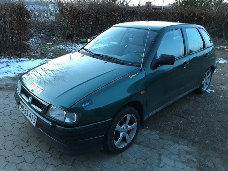 Bilen er som den ser ud, stickers rundt omkring og lidt rust hist og pist.
