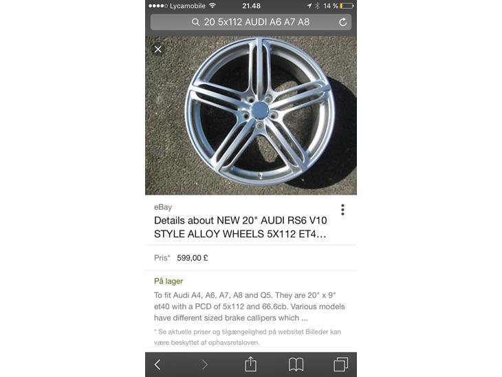 Hej søger Audi RS6 A8 alufælge i 20tommer
